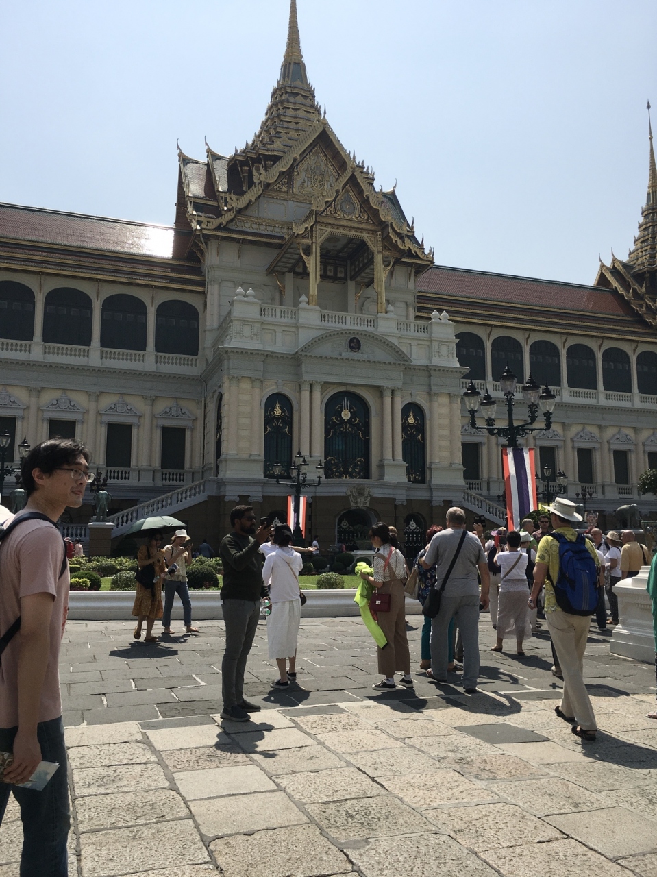 その後は王宮の「チャクリー・マハー・プラサート宮殿」を見て歩きました。行事の際には、ここバルコニーから王様がお出ましになるんですネ~