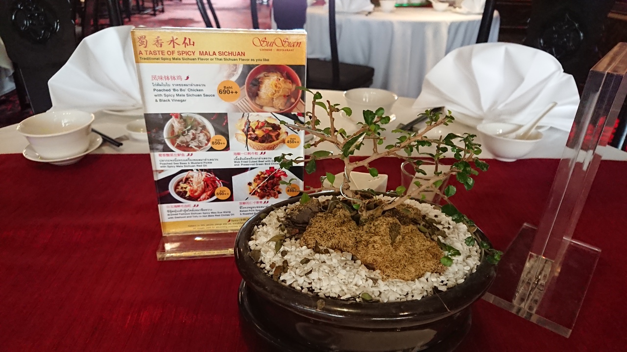 友達が中華おごる、と言ってくれたが、11月末にタイムズスクエアのジャスミンが閉店してしまい、アソーク界隈でちょっと上品な感じの中華料理、フカヒレメインじゃなくて、北京ダックや、麻婆豆腐、チャーハンなど日本人が好きそうな中華料理はどこだろうと探していた時に、そういえば20年前にここに行ったが、今でもやっているのか?と試しに来てみたら、20年前よりも豪華な雰囲気に変わっていて、値段は4星老舗ホテルの中の中華レストランとしては良心的な値段かな?と感じさせる内容でした。