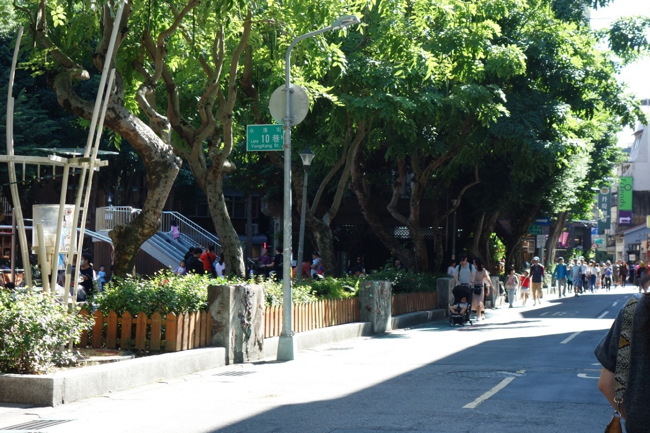 前門駅沿いの大通りから路地を入った細い通りの永康街です。かき氷の有名店など人気の飲食店など軒を連ねていて人出が多い人気の場所です。休日は外国人観光客だけでなく地元の家族連れやカップルなども多く訪れていました。