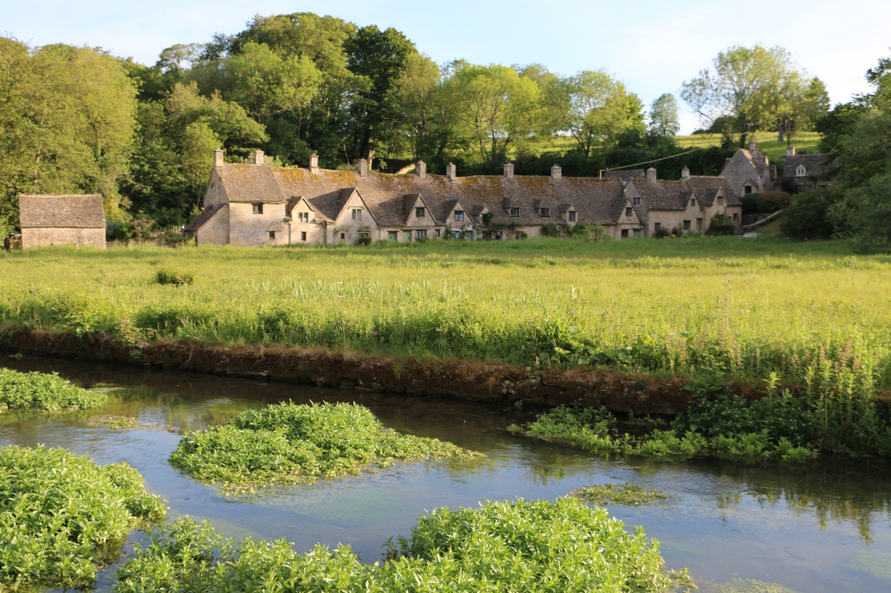 白鳥やカモが泳ぎ回るコルン川や14世紀の石造りの建物が残る「アーリントン・ロウ」はバイブリーを象徴する風景で写真スポットでもあります。