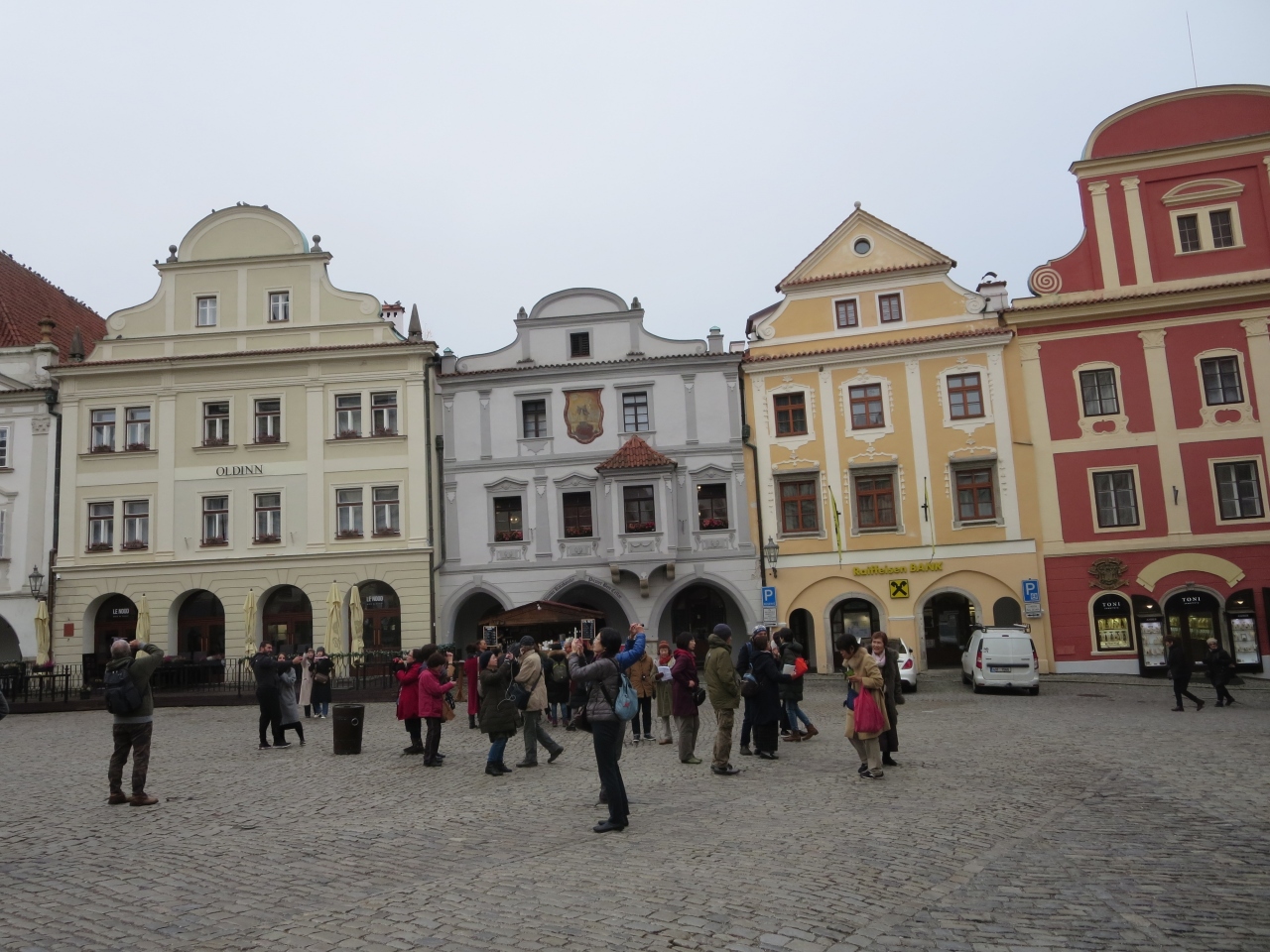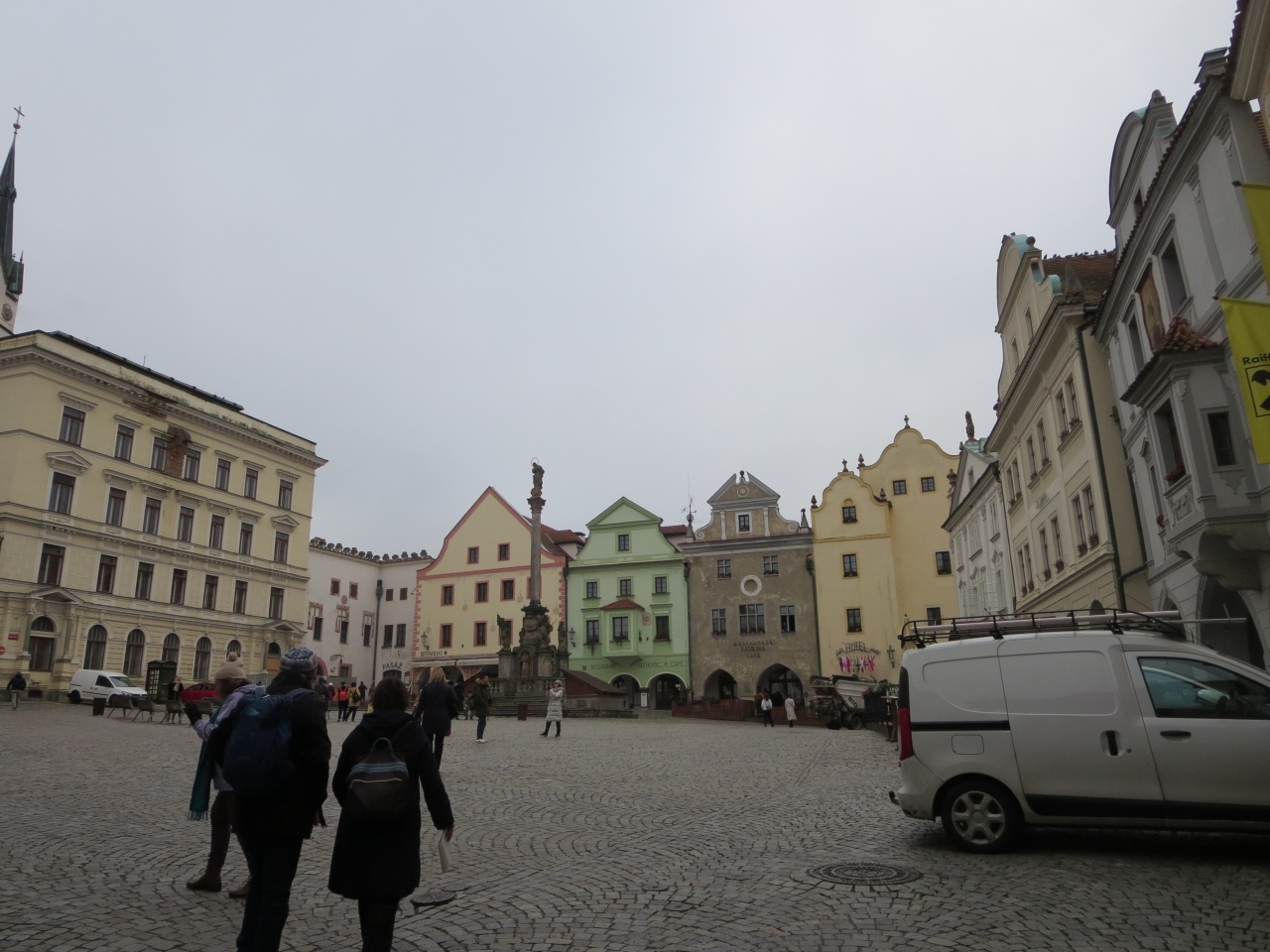 チェスキークロムロフ旧市街の真ん中にある広場で、ホテルやレストラン、市庁舎等の建物に取り囲まれています。広場の中央付近にペスト記念塔が建っていますが、観光客は広場全体に広がっているので窮屈さは感じません。