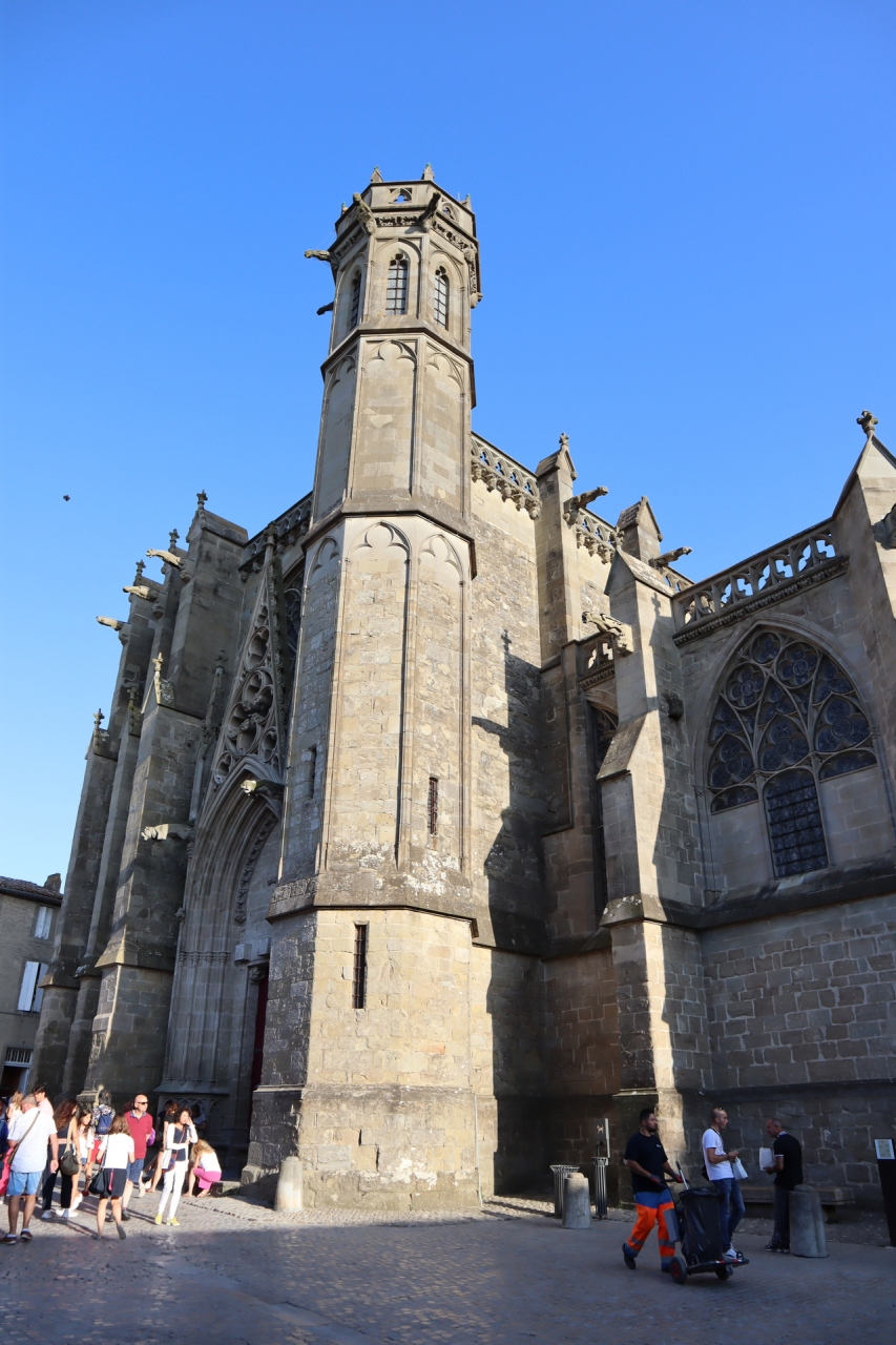 カルカソンヌのシテ内にある大聖堂です。11世紀から14世紀に300年もかけて建設されました。シテの中にもこんな大聖堂があるのかと驚きです。内部のステンドグラスがでとても素晴らしく、とくに薔薇窓がとても美しい色合いでした。