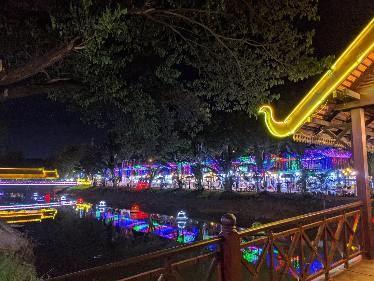 夕食後、ライトアップに誘われて、ナイトマーケット周辺をぶらつきます。特に買いたい物もなく、冷やかしだけなんですが、夜のお店はなんとなく日中よりも魅力的に感じるのは何故でしょう。もしかすると、商品を眺めるよりも、人間観察をしている方が楽しから?!