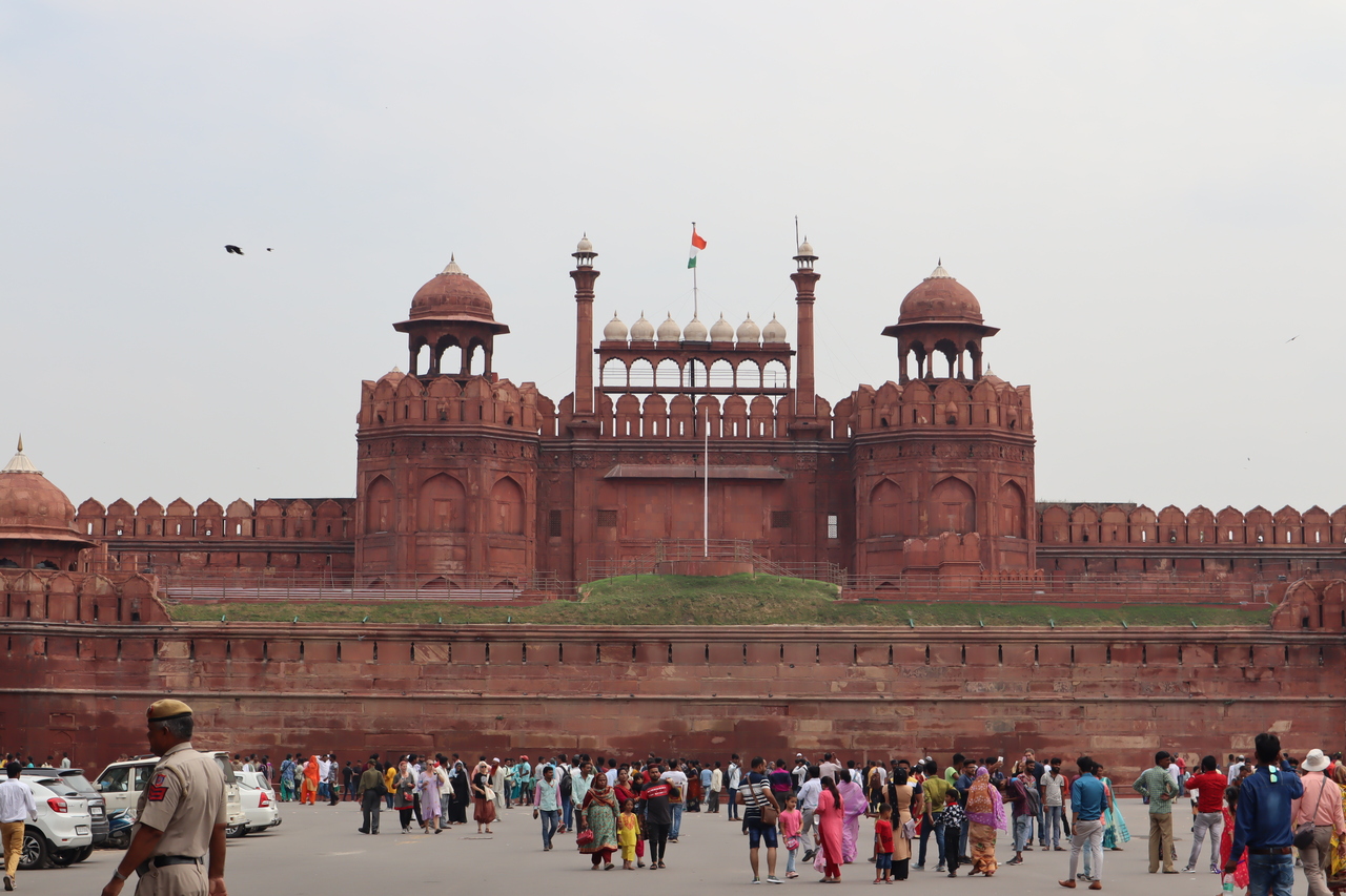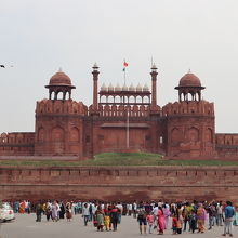オールドデリーのまさに街中にあり、混沌としたインドの雰囲気にのまれそうでした。道路の反対側にはバザールの入り口があるためかものすごい交通量。タージマハルを建てたムガル皇帝シャー・ジャハーンがデリーに建設しました。レッドフォードの名前のとおり、赤砂岩を使った赤い城です。
