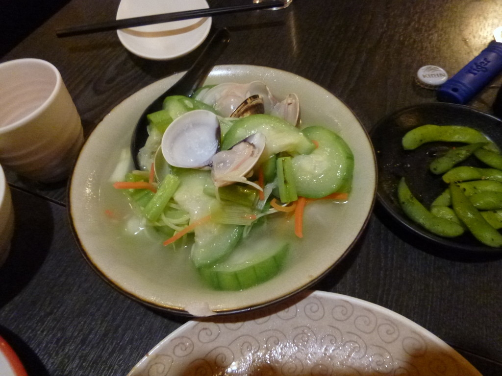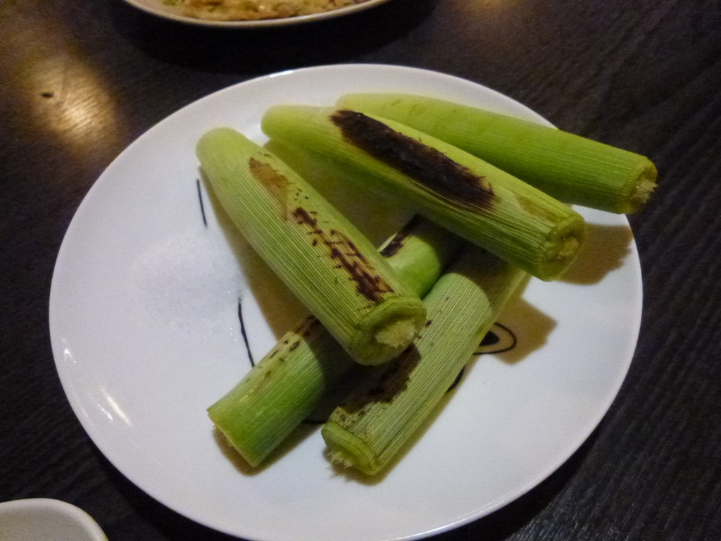 帰国前に、家族と食事、妻が決めた店に入りますが、初めてなので期待しないでお店に入りました。テラス席は満席なので、室内の席になりました。ビールで乾杯して、卵料理、ミニトウモロコシ、豚肉料理、炒飯、エレンゲ、牛肉料理、卵の塩漬けと厚揚げ豆腐、蛤と冬瓜のスープ、鯵の塩焼きを注文して美味しく頂きましたとはいかず、注文したのが悪かったのか、味はいまいちでした。お値段は、料理とビールで2000元位、高いと思いました。