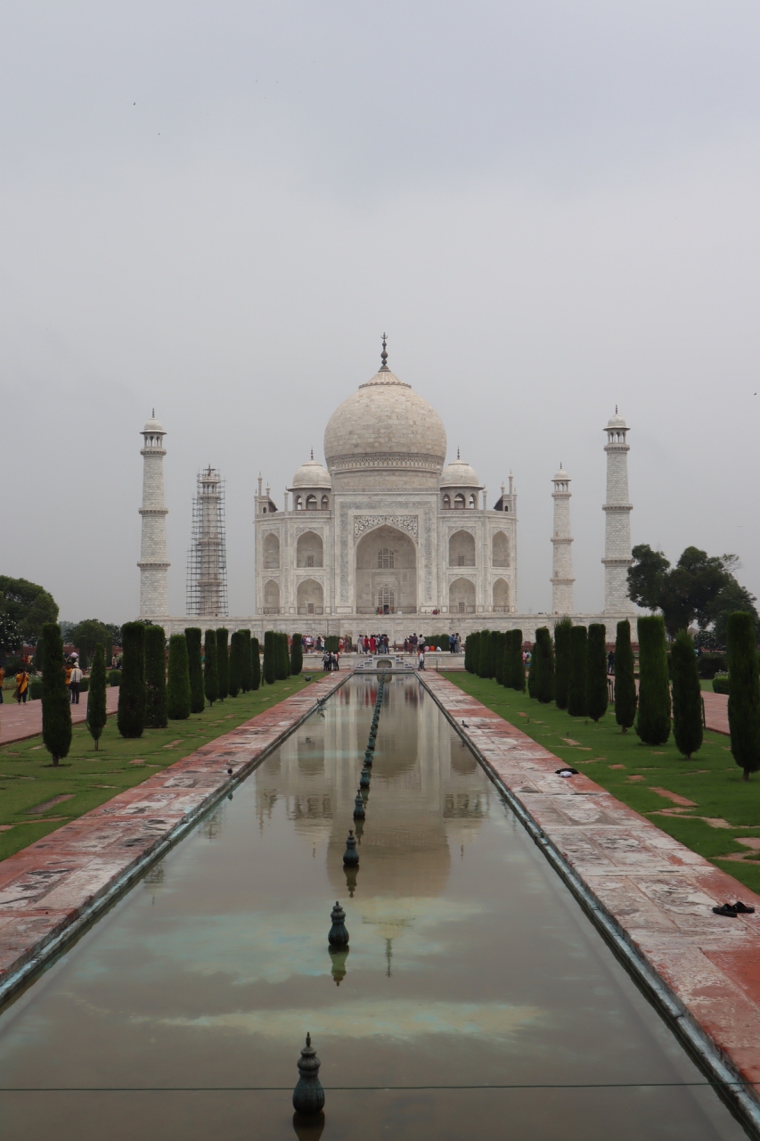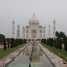 死ぬまでに一度タージマハルを見てみたかった、そう思っていたせいか実際に来てみるとものすごい感動でした。こんなに綺麗な建築があるのかと思うぐらいです。全て大理石でできていて単純に真っ白なのではなく、大理石の色合いが微妙な陰影を作っているところがまた美しさなのだと近くからみて思いました。