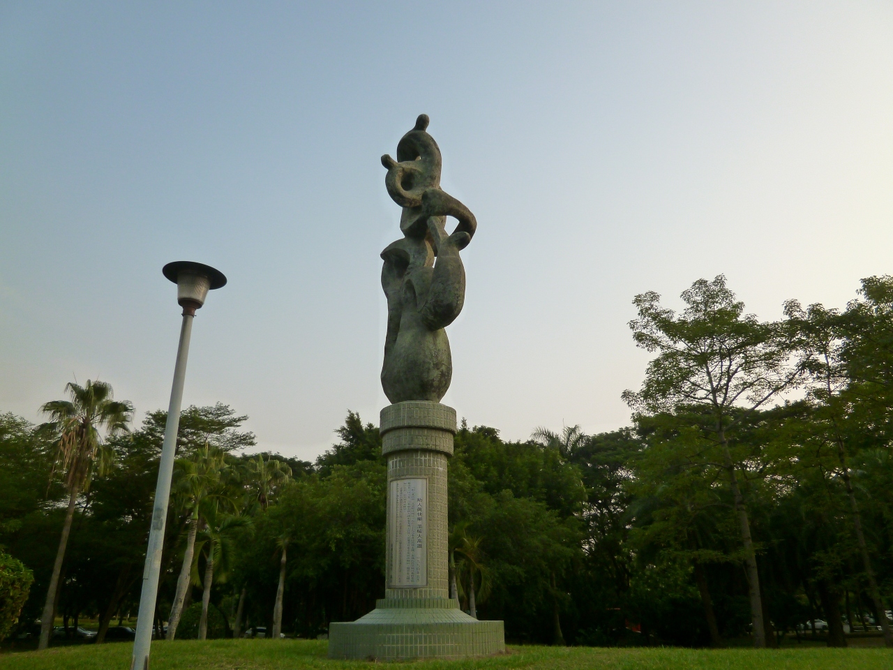 「衛武営都会公園」に行く途中に、中正公園の入り口を見つけたので、寄り道することにしました。中正公園は、静かで割と大きな公園で、園内には芸術モニュメントが数件置かれていました。入口では、子供用の自転車訓練場で来ていましたが、全体的に、訪れる人は殆んどいませんでした。お目当ての衛武営都会公園は、道路を隔た先の所にあります。
