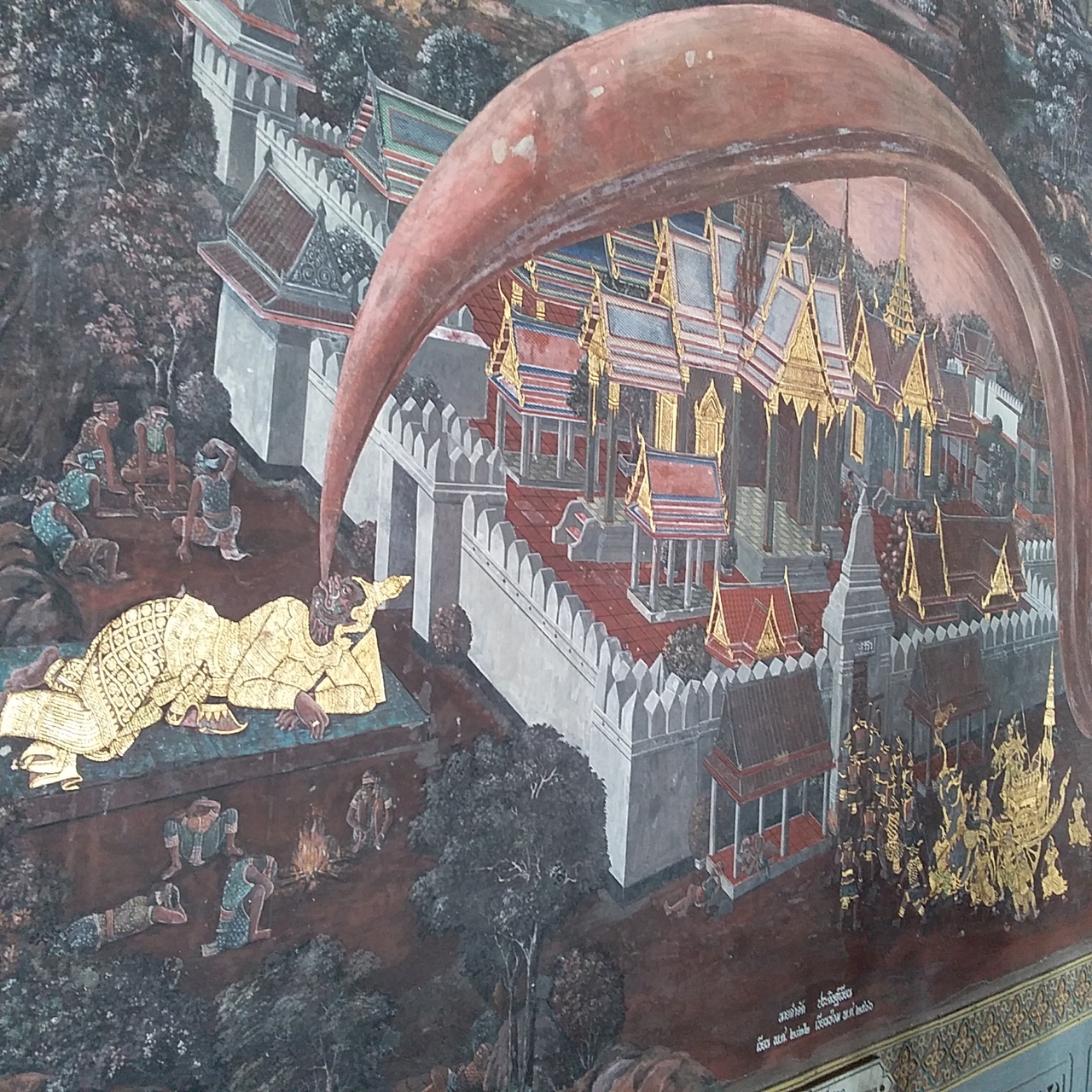 すごいです。ラマヤナの壁、あまり皆気にしていないけど結構楽しめました。タイ語で書かれていた訳とかわからなくて、あまりストーリーが、おえなかったけどタイのアート的なタッチでした。人が、とにかくおおくてびびった。