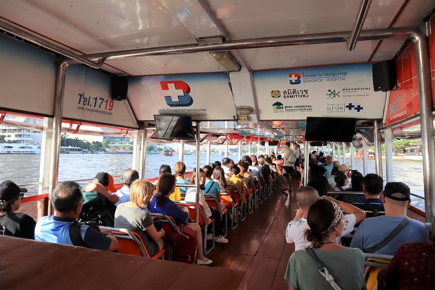 チャオプラヤ川のクルーズ船はいくつも種類があります。食事しながら景色を楽しむもの、乗り降り自由の観光船など。その中で、このエクスプレスボートは、現地の人が普通に使っている船。もちろん観光客も乗れます。サトーン桟橋からワットアルンまで乗りましたが、途中数か所によって、15分、約50円。船の行き先(種類)は3つありましたが、チケット売り場にある地図で、ワットアルンを指さしたら、ここに並んで次の船、と身振りで教えてくれました。