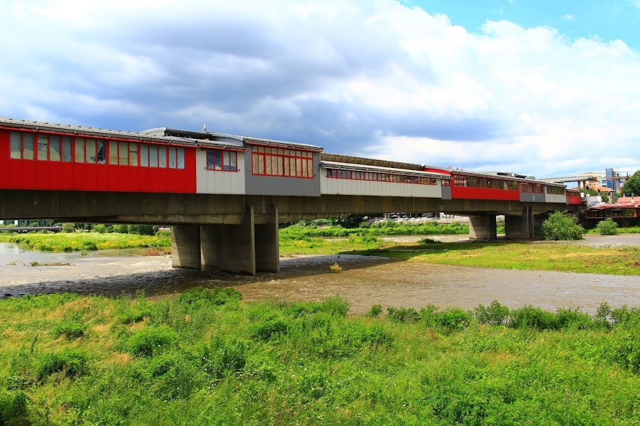 町の北を流れるマリッツァ川には一風変わった橋が掛かっています。橋が丸ごとアーケード街になっていて、その中にはお菓子屋さんなどがありました。川自体は水量も多くない小さな川です。橋の先には新市街があります。