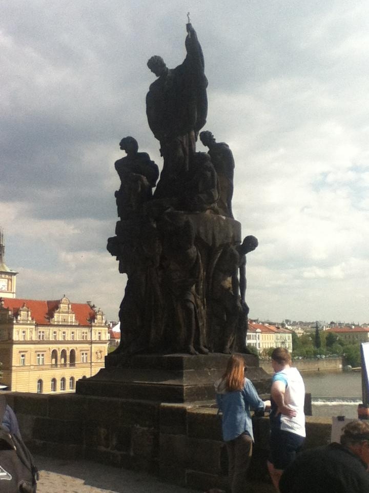 フランシスコ ザビエル像はカレル橋の欄干に並ぶ聖人の像の一つである。フランシスコ・ザビエルはイエズス会創設者の一人で近代最大の宣教師と言われ、インドや日本などのアジアを中心に布教活動を行った。銅像ではザビエルは左手で十字架を持ち立っていて回りには人が並んでいる。観光客は多いが、丁寧に描かれているこの石像をじっくり見るのもいいかもしれない。