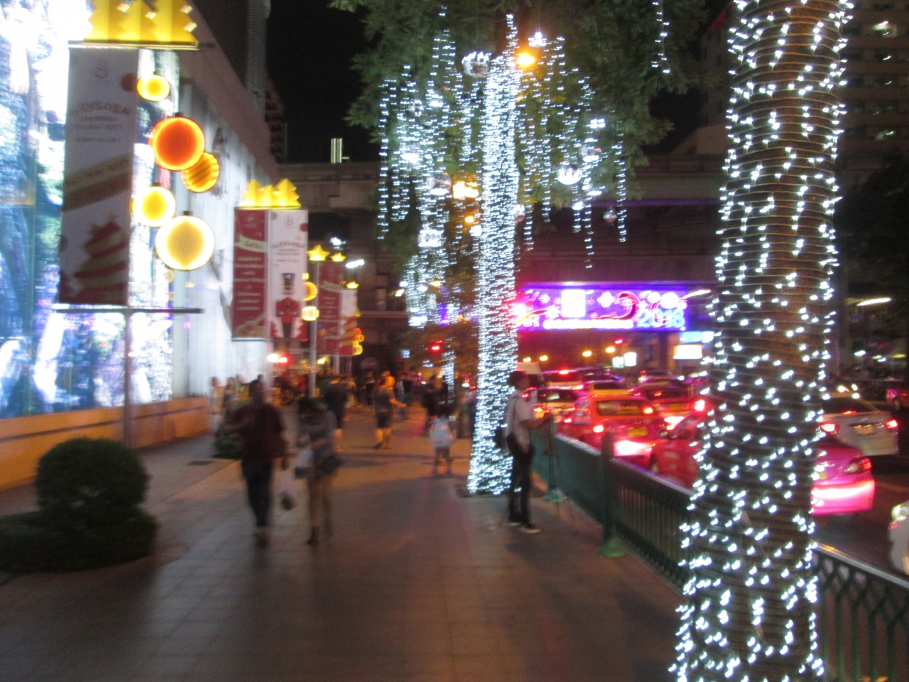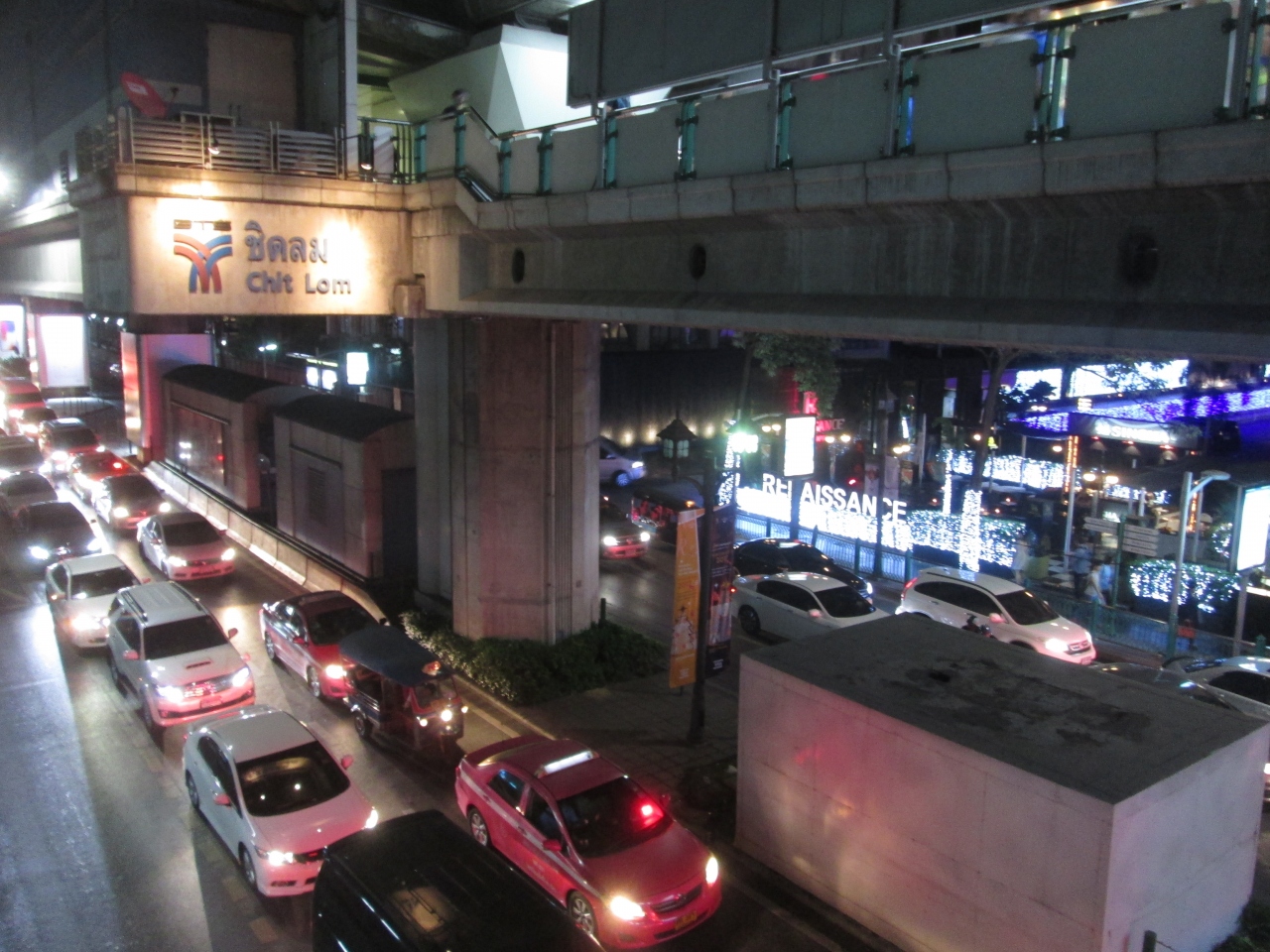クリスマスの時期にチットロム駅を利用しました。昨年のクリスマスはプミポン国王逝去直後のため自粛モードでしたが、10月末で喪が明け、きれいなイルミネーションを提供していました。チットロム駅前のイルミネーションは本当にきれいでした。