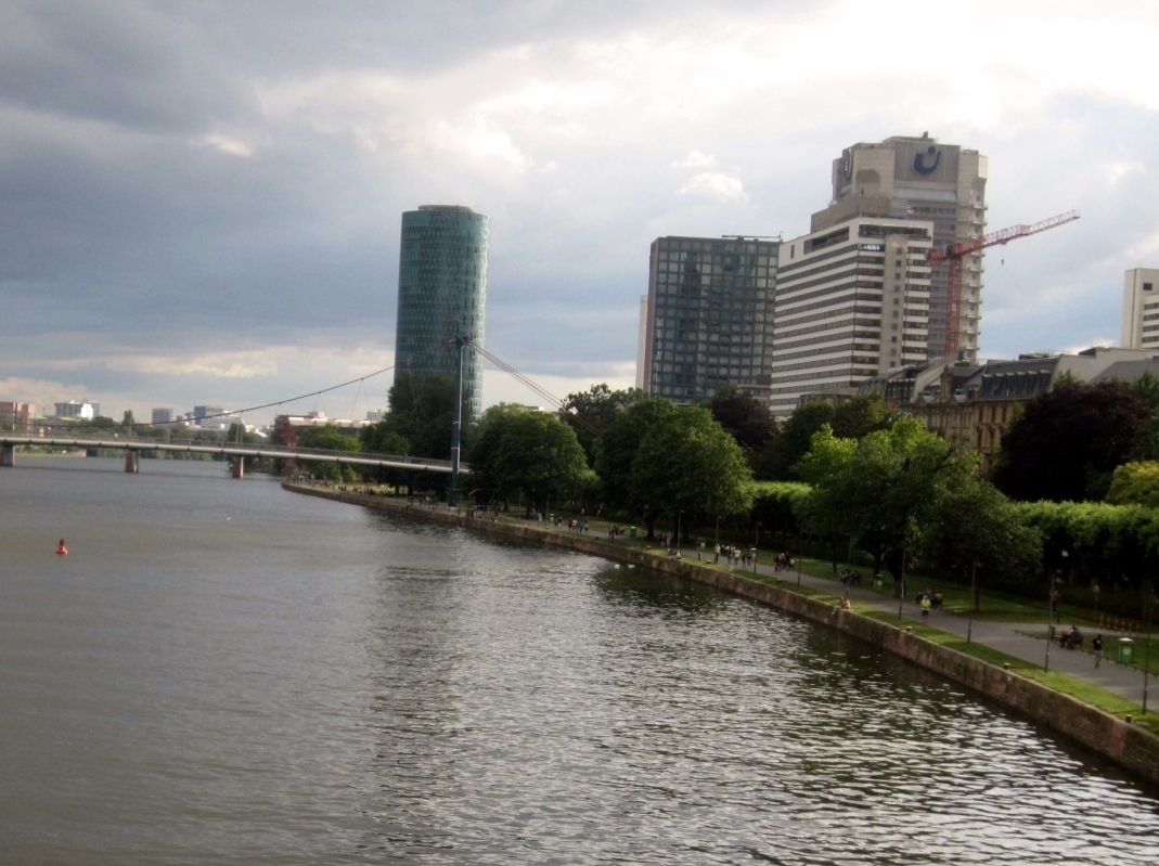 マイン川の北側に沿う車道ですが、階段を下りれば芝生があり散策やサイクリングが楽しめる遊歩道になっています。芝生でのんびり休んでいたら、アヒルやガチョウがガァガァやってきます。この通り沿いには歴史博物館やユダヤ博物館などがあって、落ち着いた雰囲気が感じられます。