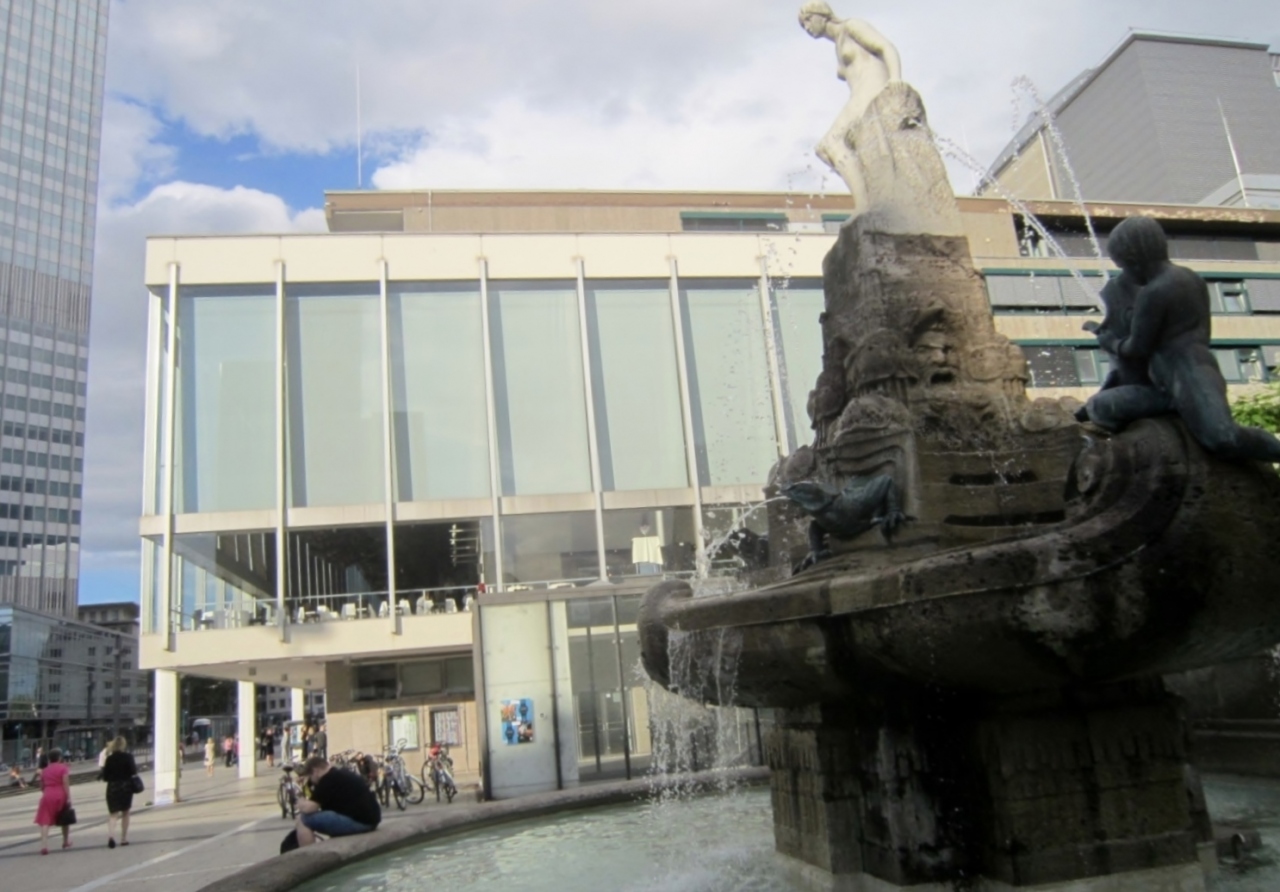 中央駅から、市電(Uバーン)で1駅 Willy-Brandt-Platzを降りてすぐです。駅から歩いても10分ほど。目の前はユーロタワーでユーロのオブジェが目印。座席数1,400。火災によって1990年に近代的デザインで再建されました。