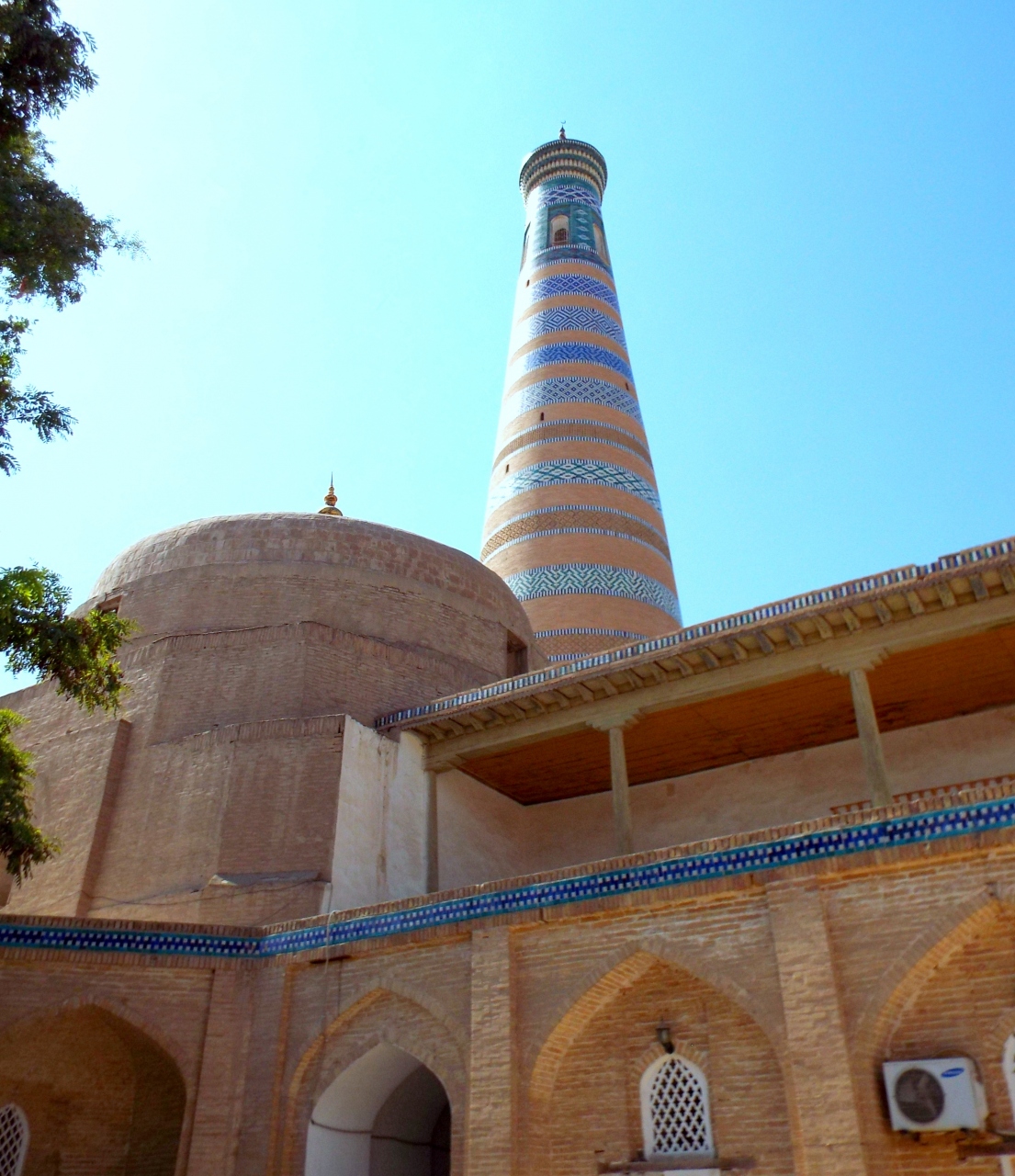 ヒワの「イスラム・ホッジャ・ミナレット」は、ヒワで最も高い建物で高さ約45mもあります。1910年、ヒワの最後のハーンの大臣のイスラム・ホッジャによって建てられた、まだ100年足らずの新しいミナレットです。見上げると首が痛くなる程高いミナレットです!!