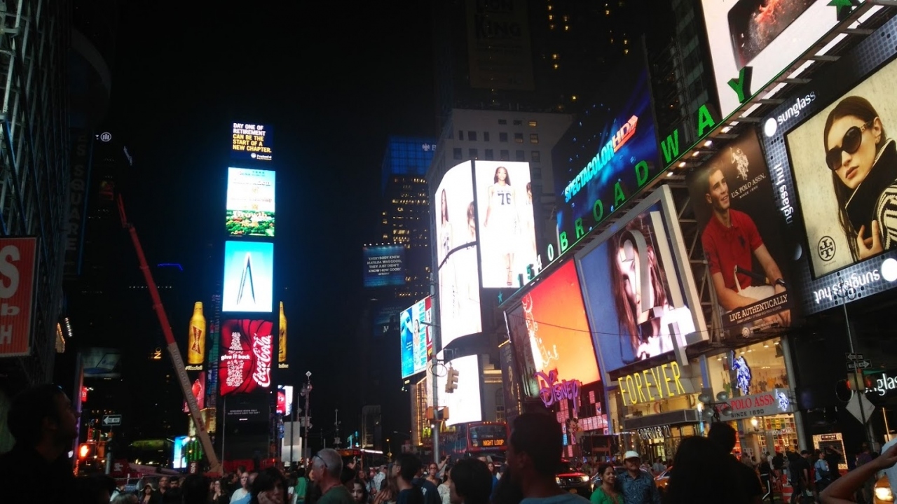 タイムズスクエアでは両側にたくさんあるミュージカルシアターが有名です。