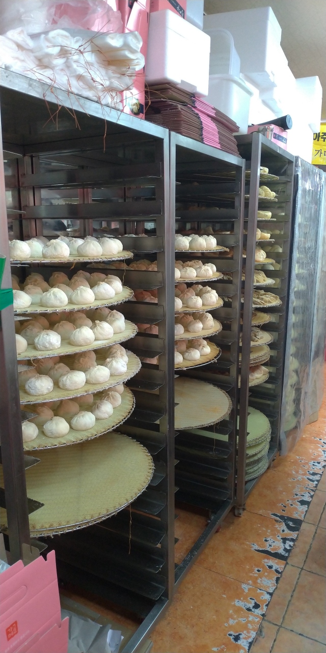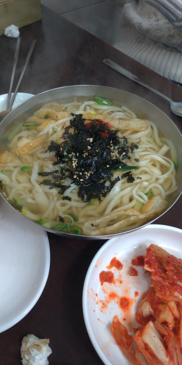 南大門にある人気のマンドゥ屋さんで、1階の調理場を通り抜けて二階で食べれます。手作りの甘めなもっちりふわふわな皮にジューシーな餡が美味しかった!カルグクスも有名だけど、カルグクス通りの某有名店の麺のほうがコシがあって好みでした。