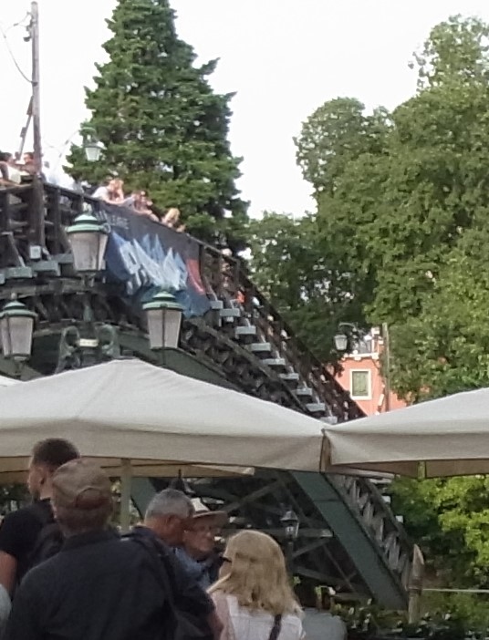 カナル・グランデにかかる貴重な橋で、アカデミア美術館へ向かう際に渡りました。橋上は渡る歩行者、眺めを楽しむ人、物売りで混雑しており、こんなに乗っても大丈夫?と思えるほどでした。