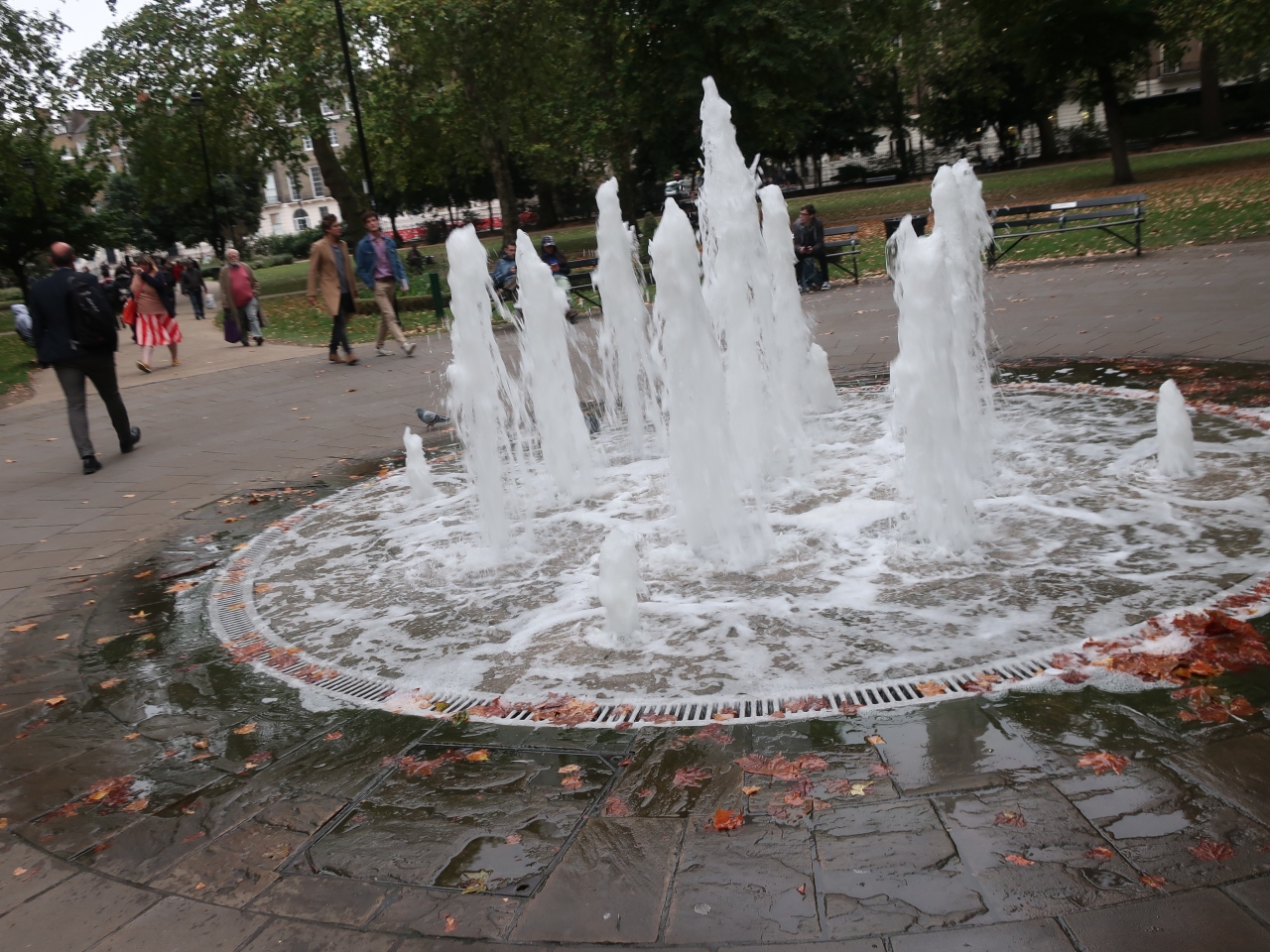 大英博物館に程近い町中にある公園。公園を突き抜けることで近道になるので昼夜を問わず多くの人が公園内を行き来している。夜間でも治安面での心配は感じませんでしたが深夜の状態は利用していないのでわかりません。
