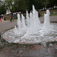 日中は噴水もあり緑もあって気持ちの良い空間です。