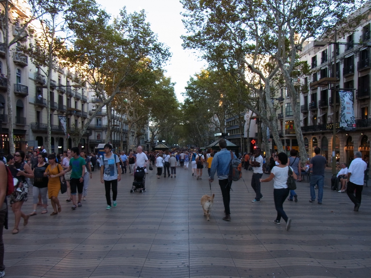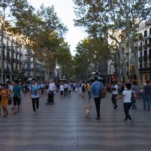 バルセロナのメインストリートである通りで、カタルーニャ広場からバルセロナ港まで続いている大通りです。大通り沿いには大道芸人がいたり、テラス席が並ぶレストランがあったり、露店がでていたりと活気がありました。
