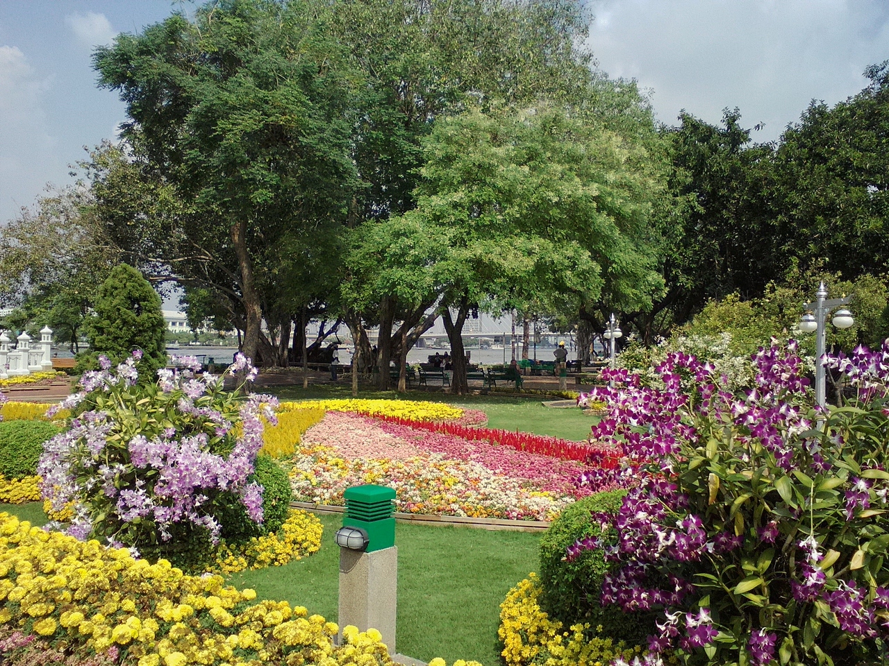 カオサンエリア、チャオプラヤー川沿いにある公園。場所柄外国人の姿が目立ちます。小さな公園ですが木陰あり、ベンチあり、芝生あり。そして開放感があり眺めもいい。公園としてはかなり優秀だと思います。