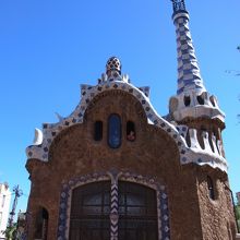 ガウディ作品として有名なグエル公園の入り口付近にある建物です。外観はかわいらしいお菓子の家のような雰囲気で、記念撮影にもぴったりの建物でした。内部はインフォメーションセンターやお土産屋さんになっていました。