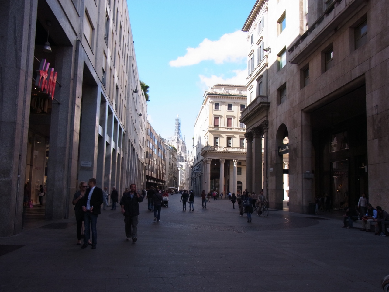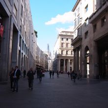 ドゥオーモの近くにある歩行者天国の通りです。こちらの通り沿いにはショップが多く並んでいて、ショッピング街になっていました。観光客も地元の人も多い雰囲気で活気のある通りでした。また、道端には大道芸人などもいました。