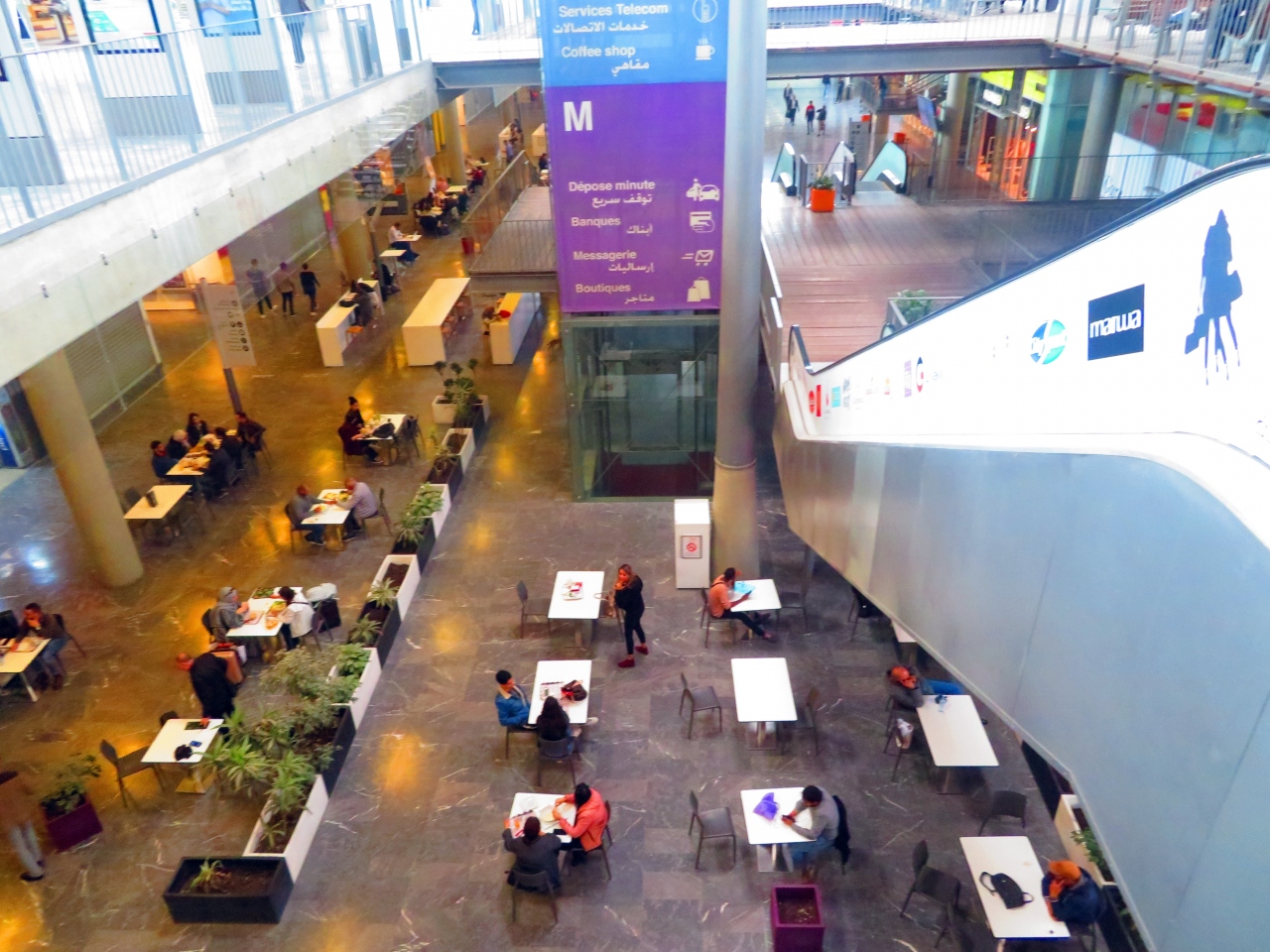 旧市街の近くにあり、空港へは乗り換え無しで行けるので非常に便利です。駅舎は近代的なデザインで、地上1階地下1階の非常に大きな建物で、1階には売店とマクドナルド、スターバックスがあります。また地下には沢山のテーブルとマクドナルドや数店の飲食店があり、駅に早めに着いても、十分時間を潰せます。