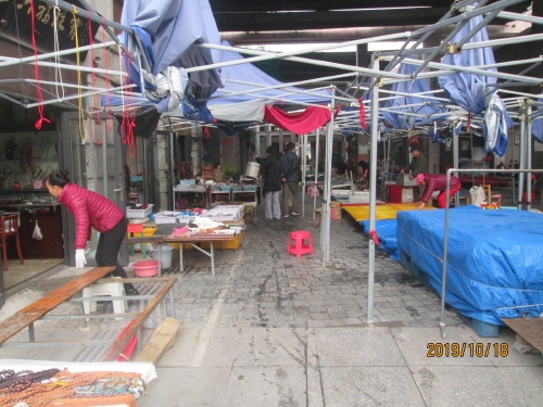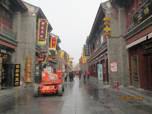 天津古文化街は、古文化街にある建築は全てレンガと木で建てられ、清代の民間建築をもとに建造されたと言います。多くの店舗は何れも小規模で1階か2階建ての土産物街です。昔ながらの良く言えば伝統的な商品を扱っています。悪く言えば露店でおかしな商品も並んでいます。早朝にはツアー客が大勢やって来ますが、夕方5時には閉店します。