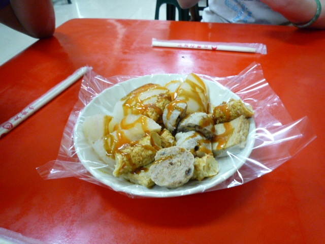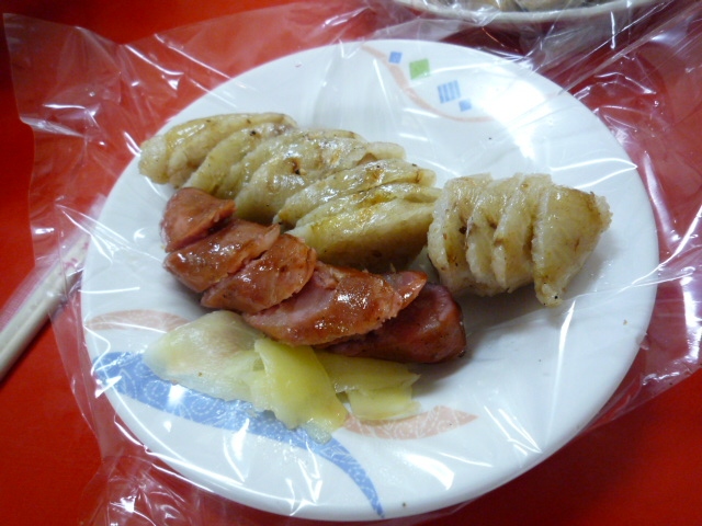 腸詰と餅ご飯:55元、焼てんぷら25元を注文し、美味しくいただきました。