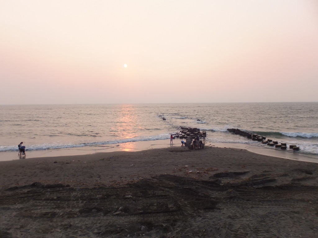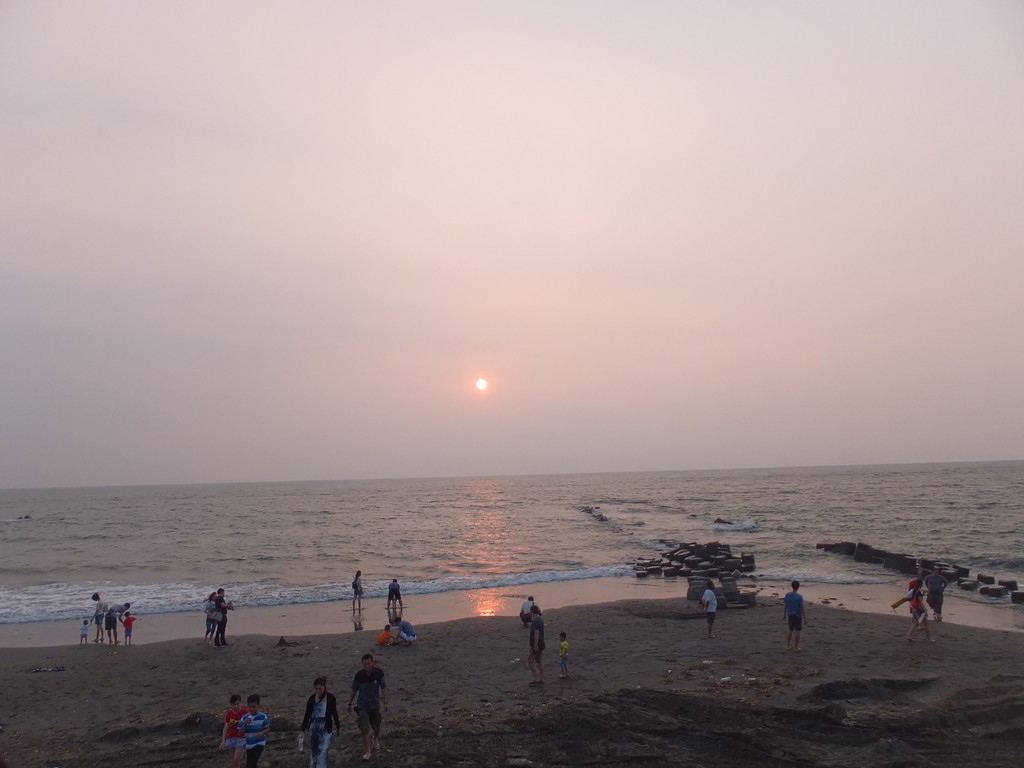 友人の運転で妻と興達港観光漁港の後、台南黄金海岸へ夕日を見に行きました。