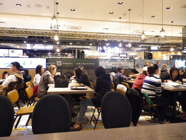 地下2階で日用品食品店舗でお土産を購入。ディンダイフォンは混雑であきらめ地下1階のフードコート米屋でお昼ご飯、飲み物は玄米茶を買って美味しくランチ。夕食は8階のシンイエで。アクセスよく中山駅2番出口すぐ。