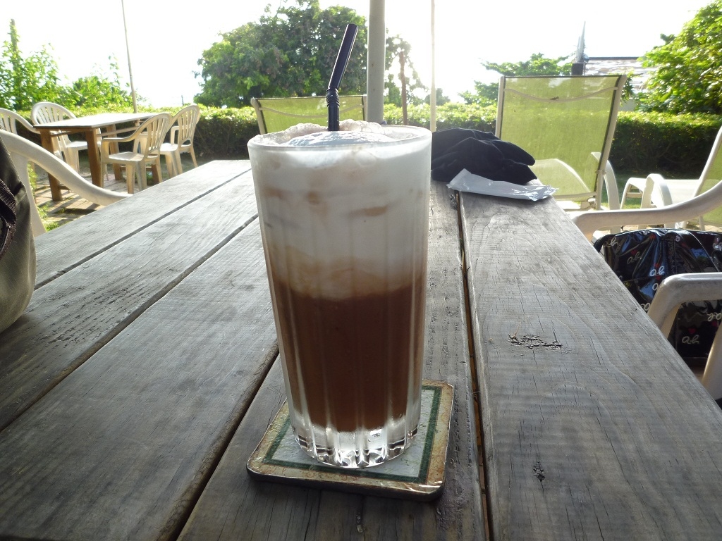 テラス席で景色を眺めながら注文したコーヒーとアイスココアを楽しみました。