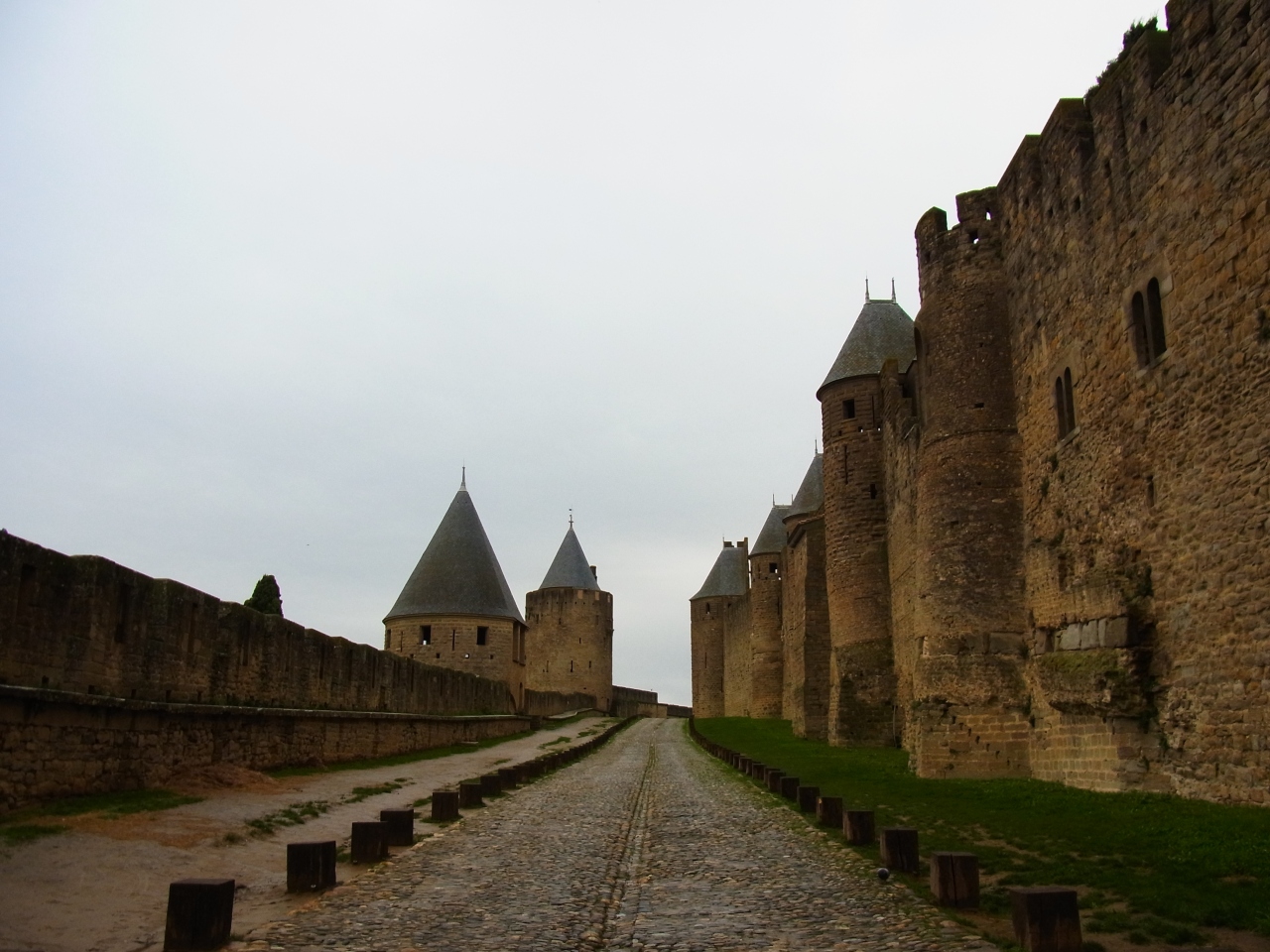 カルカッソンヌ城の城壁は、世界遺産に指定されている城塞都市を取り囲んでいる城壁です。カルカッソンヌのシテ内で、有料のコンタル城に入場すると、高い城壁の上を歩くことができます。城壁からは、カルカッソンヌの街並みを眺められます。