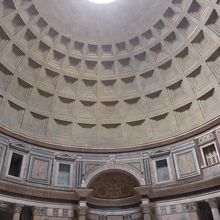 非常に大きな建築物でした。内部も自由に見学することができました。パンテオンの内部は高いドーム状になっていて、その天井の中央には、円形の穴があいていて、そこからは太陽光が降り注いでいて、神聖な雰囲気でした。