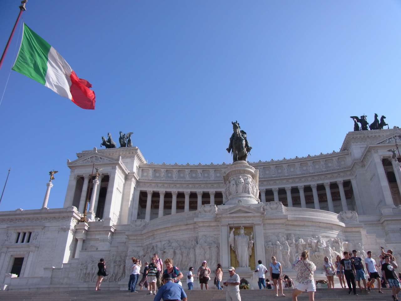 ローマの中心的なヴェネツィア広場に面して建っている白亜の大きな建物です。この建物はヴィットリオ エマヌエーレ2世がイタリアを統一したことを記念して建てられたそうです。屋上は有料ですが、ローマの街並みを一望することができました。