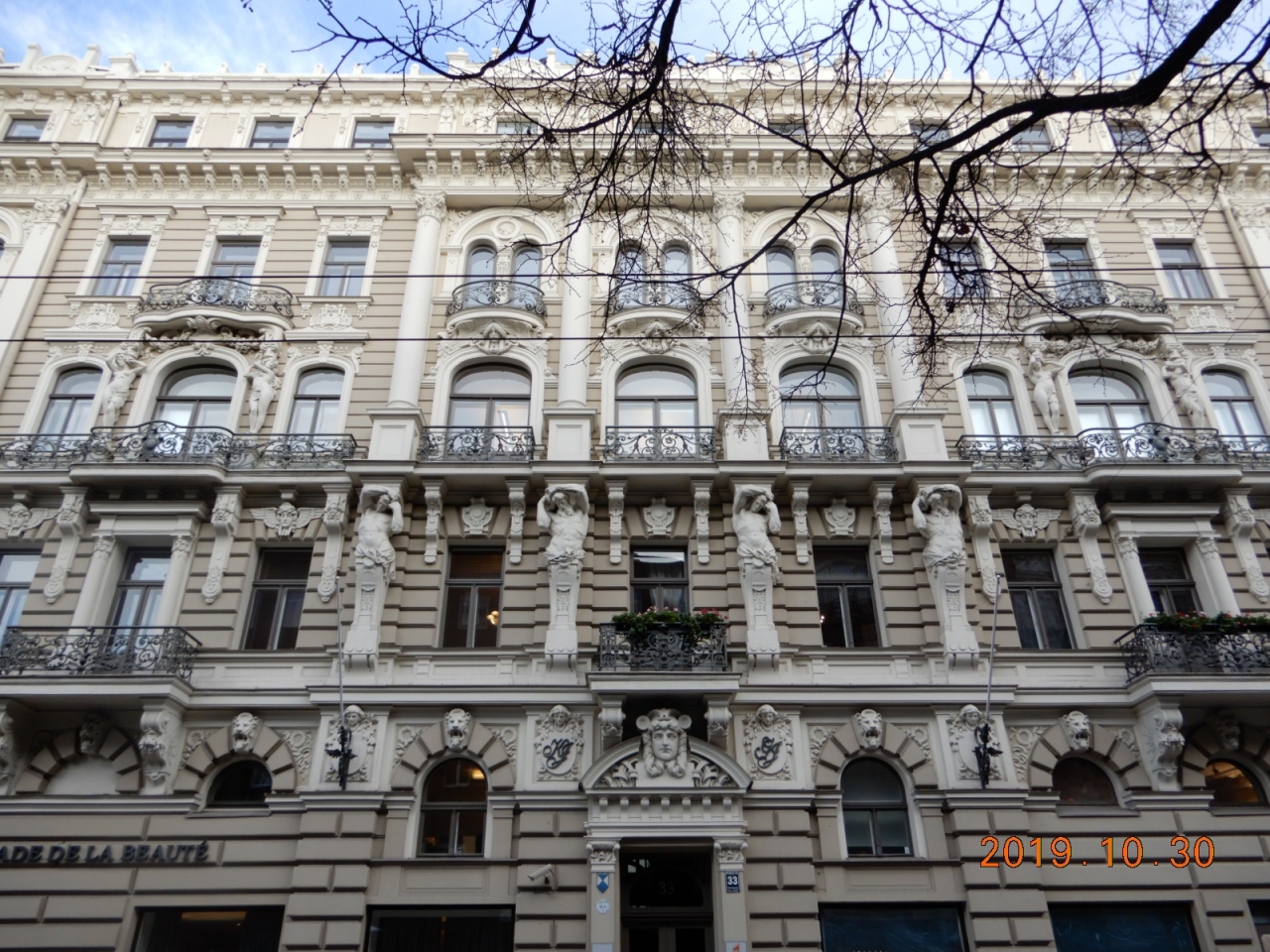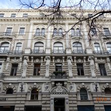 旧市街地にもポツリポツリとユーゲントシュティール建築の建物が残っていますが、リガの旧市街から道路を挟んで新市街地の主にアルベルタ通り辺りに集中して残っています。
