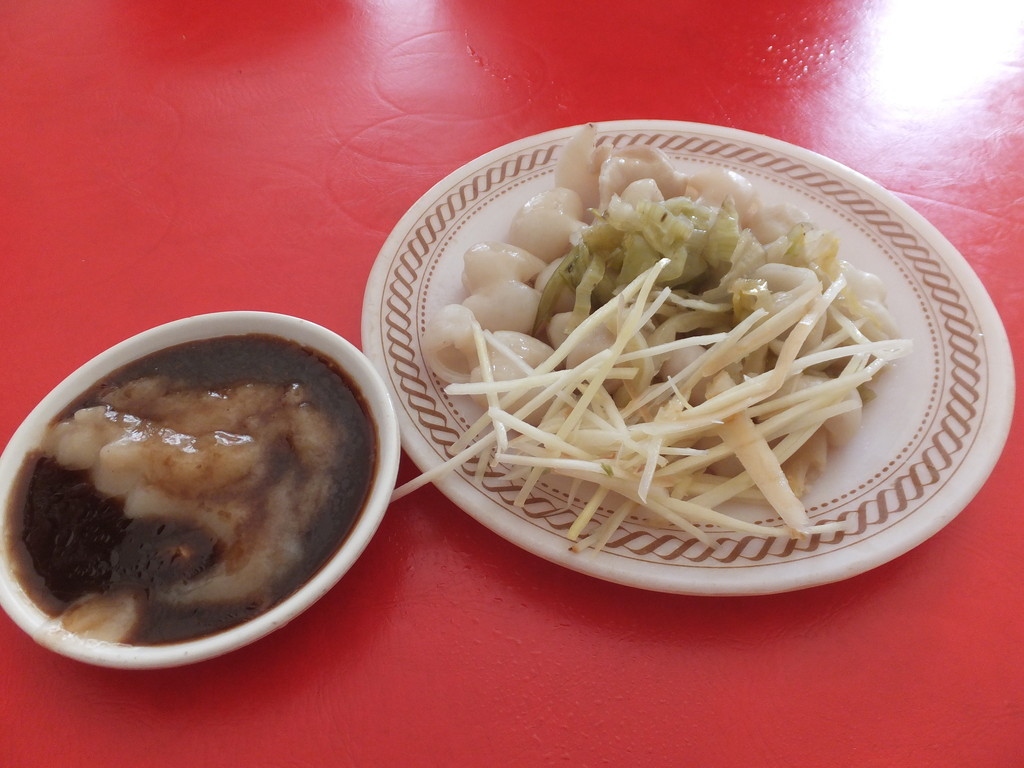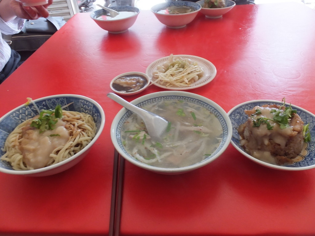 名物の筒仔米糕、とろみスープ、麺、内臓料理、レバースープを注文して、
