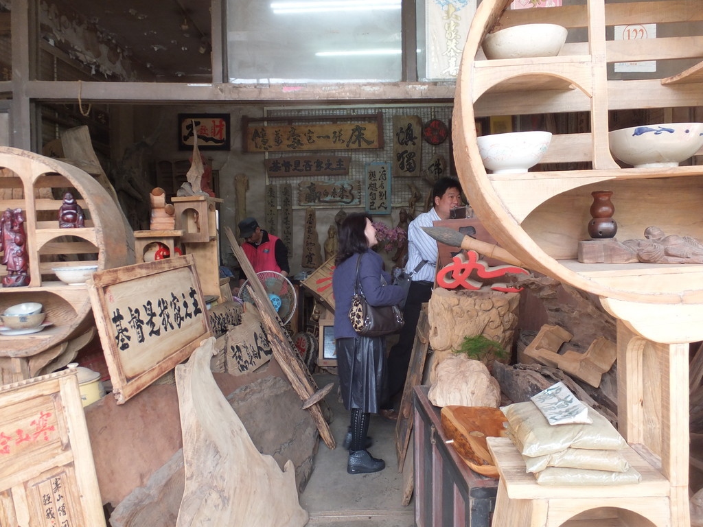 三義の水美路の両側に木工製品のお店が100m位続いています。