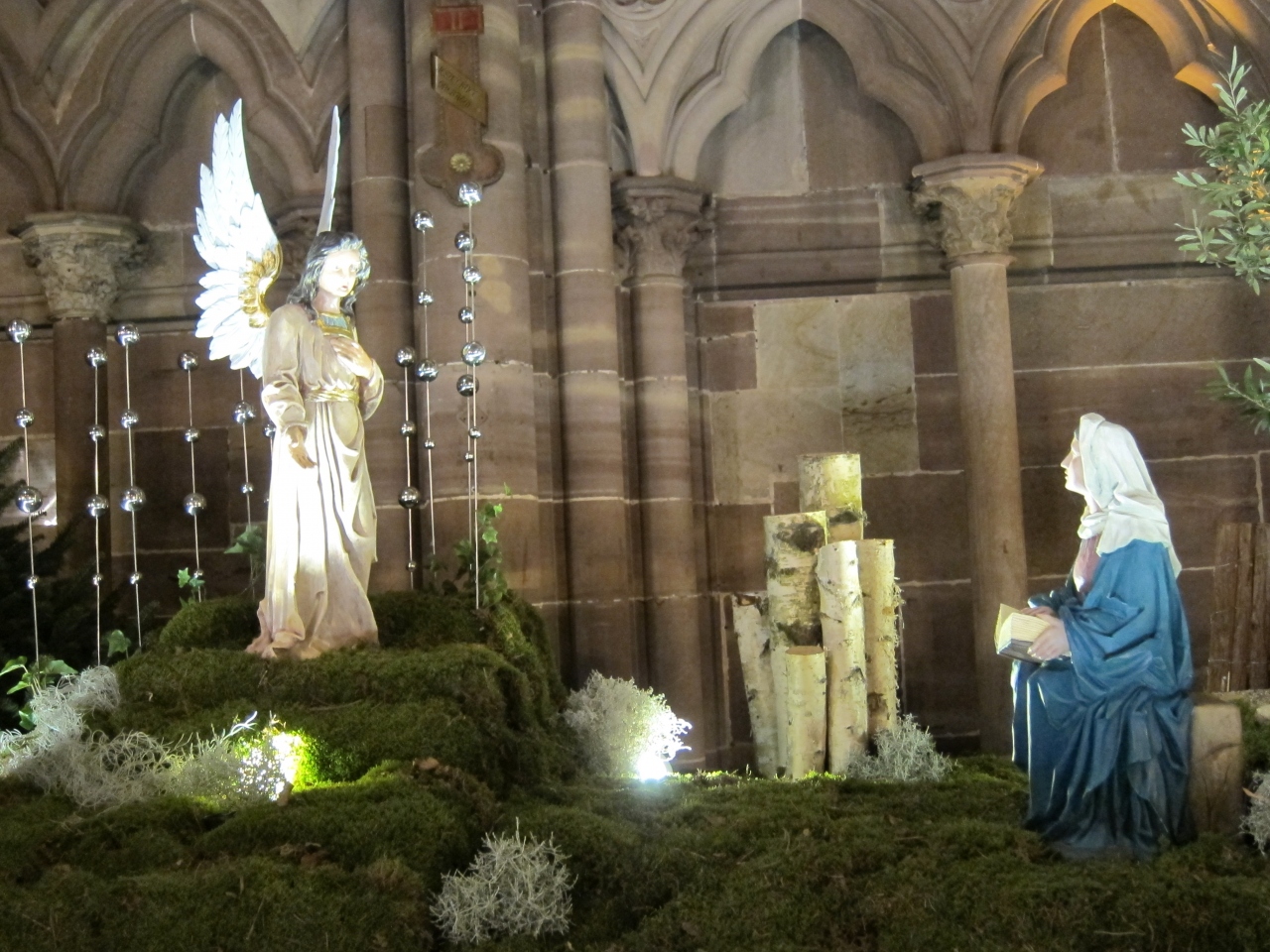 クリスマスマーケットの開催中に中に入ると、キリスト誕生の物語のクリッペがあり、見ごたえがありました。他の街ではワンシーンのみが多いのが、ここは受胎告知からのものでした。