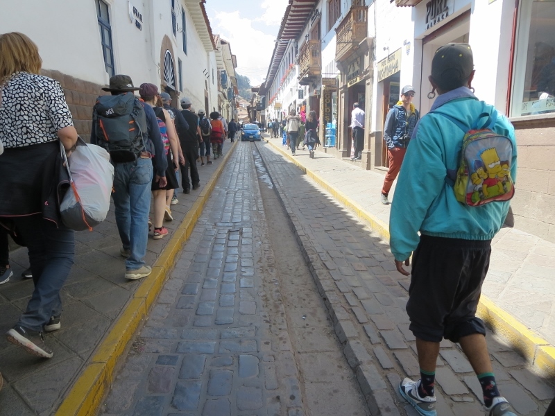 高山病に注意するようにと言われていたので、時々深呼吸をしながらゆっくり歩きました。アルマス広場から少し歩いた建物では、結婚式が行われているようでした。建物の中庭には、民族衣装を着た人たちが集まっていて、音楽が流れてきました。新郎新婦が出てくるのを待っていたかったのですが、時間がなくて戻りました。