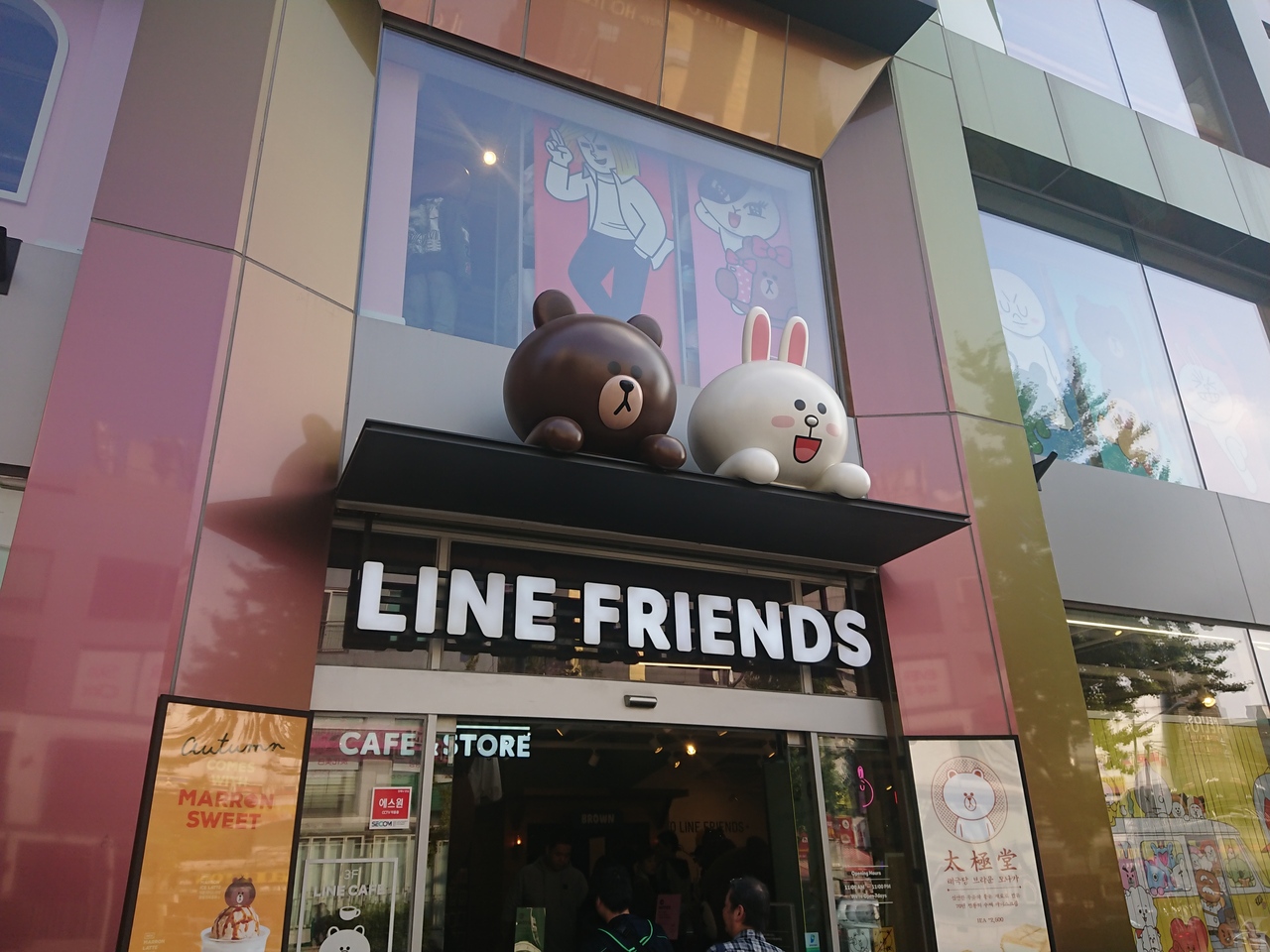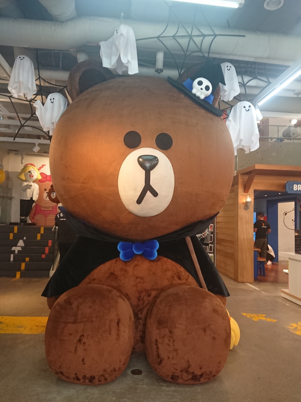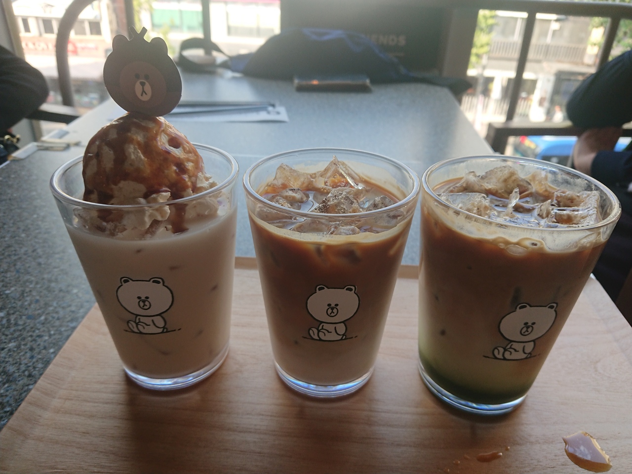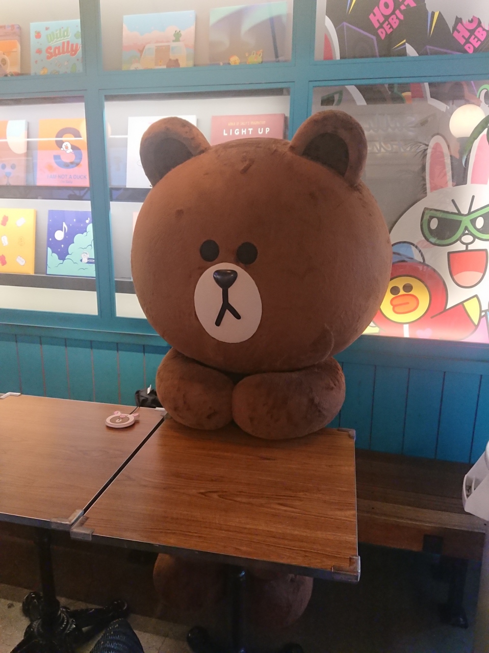 カフェにもテーブルにLINEキャラクターが座っているところがあって、ブラウンやコニーはやはり人気です