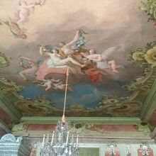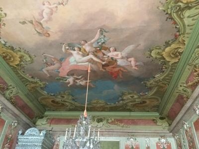 2階に上がります。ルンダーレ宮殿の天井。壁画が美しい!