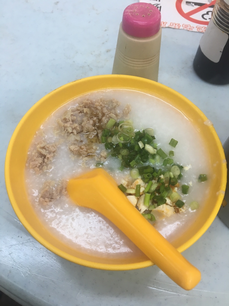 朝ごはんを食べに行きました。朝いったのでチャイナタウンはほとんどお店が閉まっていて、その辺りに寝ている人も多く、すこし歩くのに勇気がいりました。漢記の周りだけ人だかりが出来ていたので、すぐわかりました。混んでいるからか前のお客さんが使った食器がそのまま残っているところに座るように言われました。salted eggとpork入りのお粥で5.5リンギットでした。味は美味しかったのですが、卵の殻がまあまあ入っていました。現地の雰囲気を楽しむ意味ではいいお店ですが、ホテルなどのお粥の方が良かったです。