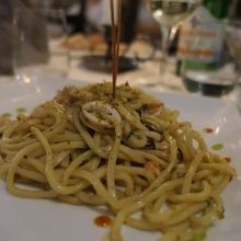 @トロッコリパスタの魚介ペペロンチーノ