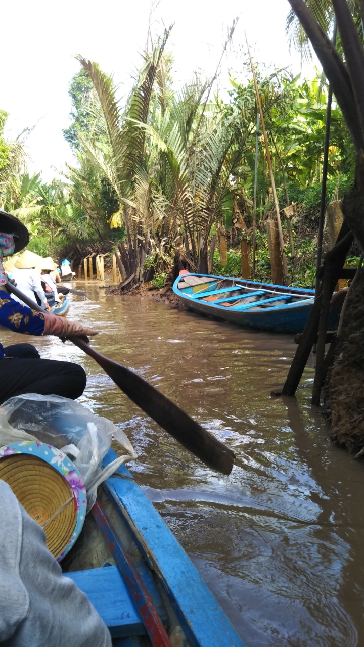 ツアーで訪れたメコン川クルーズにセットで組み込まれていたメコン川にある中州の内の一つです。ガイドさんが果物の島だと紹介していましたが、その通り島には沢山の果物がなっていました。その他蜂蜜や果物を頂くことができ、最後は手漕ぎカヌーにゆられてメコン川観覧船へ戻りました。