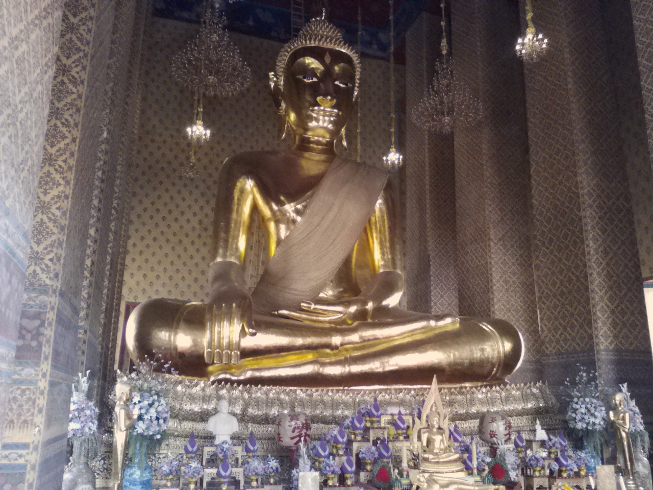 チャオプラヤー川沿いに建つ王室寺院。とにかく敷地が広大。駐車場も半端ない広さです。見どころはなんと言ってもバンコク最大級の座物像。金ピカでいかにもご利益ありそうです。観光地としてはほとんど知られていませんが隠れた名刹です。花の市場で有名な「パーククローン市場」裏手の「Yodpiman River Walk」の一画から出ている渡し船でも行くことができます(6B)。