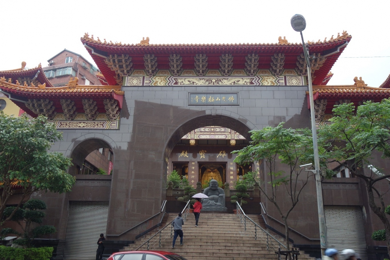 台湾に滞在中、基隆を訪れた際こちらのお寺へ立ち寄りました。中正公園の入り口に近い位置にある豪華な雰囲気のお寺で、山門を入ると奥に金色の仏さまがいらっしゃいました。台湾の伝統的な寺院のイメージと違う造りをしていました。