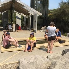 ロトルア市街の中心部から山手の方に行ったところにある大きな公園で、足湯がありました。足湯は、屋根付きと、屋外の二箇所ありました。中心部に池があり、周辺にはところどころに柵があり、蒸気が噴き出し、硫黄の匂いもしていました。